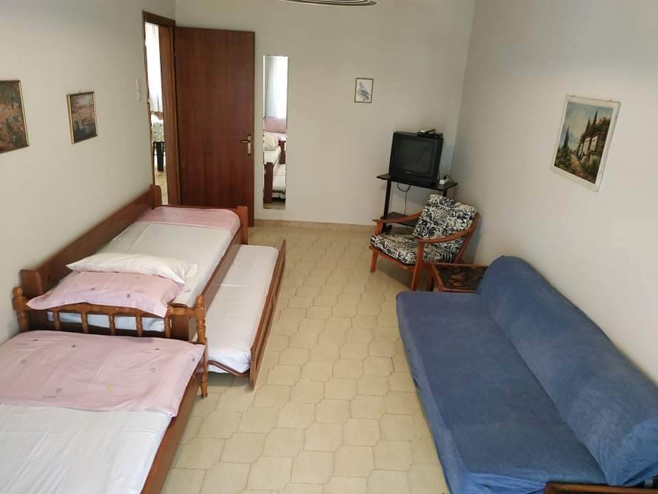 Вилата располага со дуплекс апартмани од кои апартман број 1 има страничен поглед на море. Се состои од две соби и одделна кујна. Во едната соба има брачен кревет а во другата два единечни. Кујната е опремена за подготовка на храна и има прибор за онолку патници колку што би престојувале.Апартманот има машина за перење алишта.